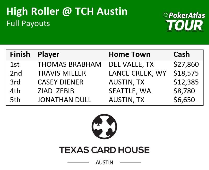 Five players remain in the $2,500 High Roller at TCH Social Austin, and play resumes Tuesday, November 5 at 2:00 PM! 💥