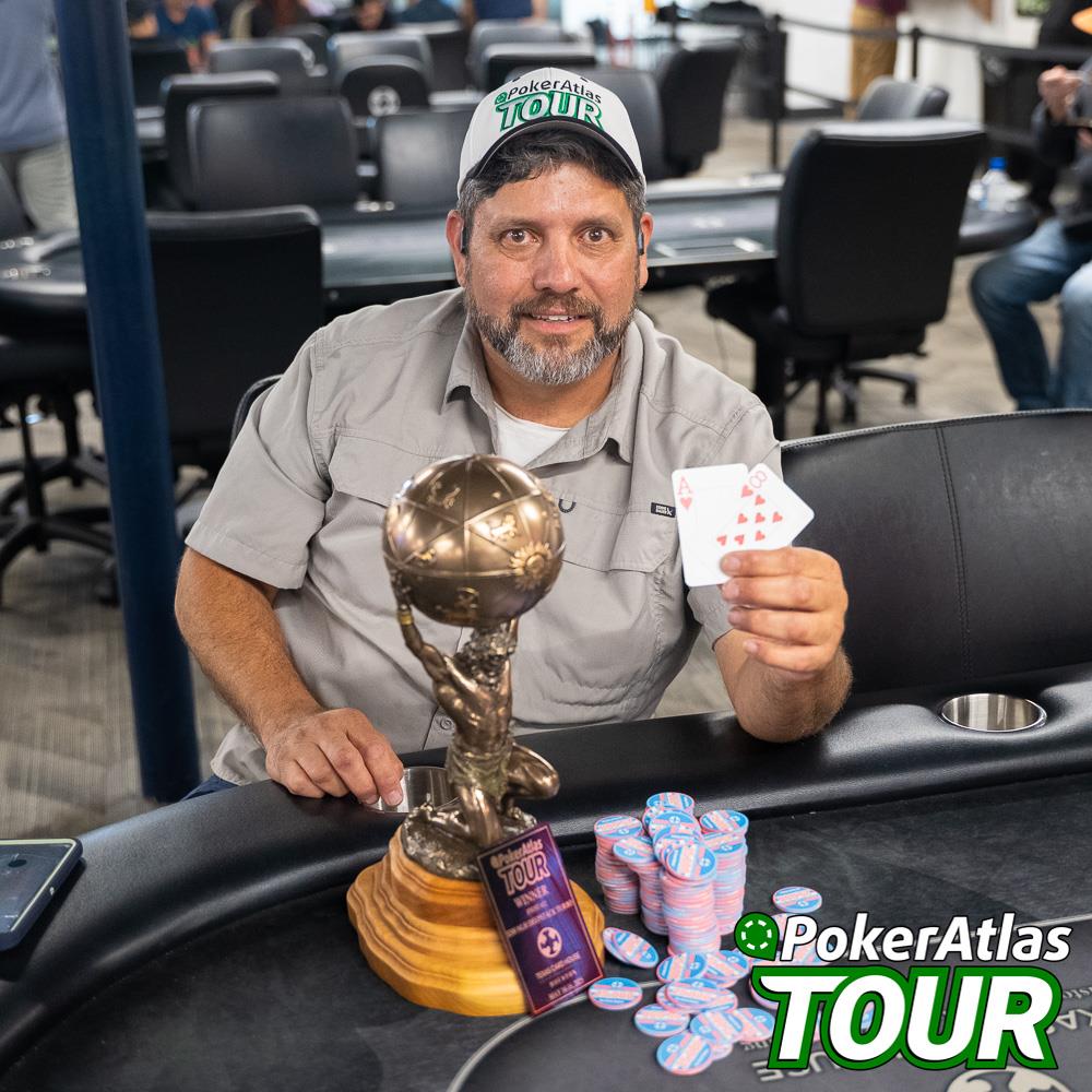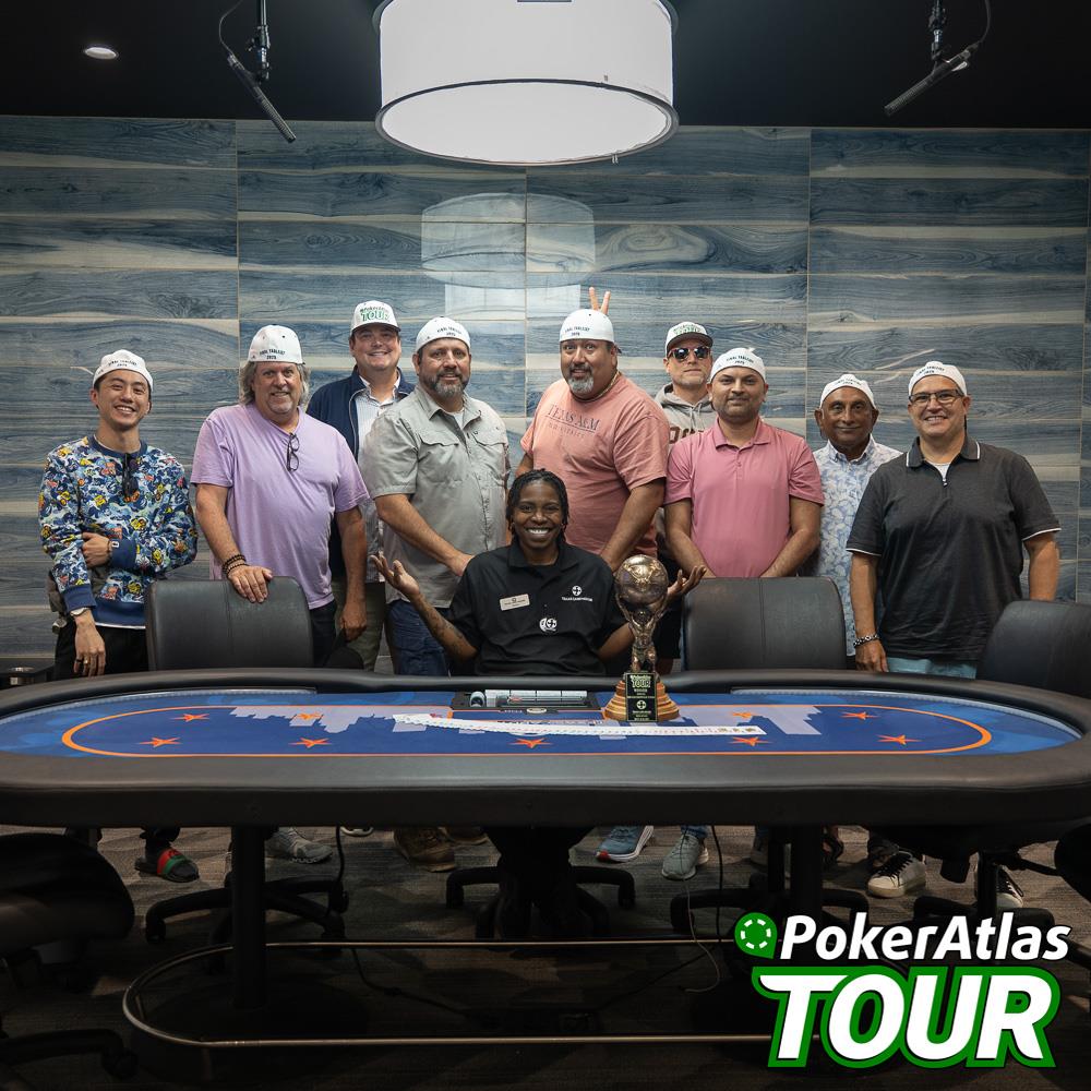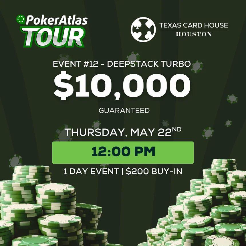 Cards are in the air and blinds are flying in our turbo deepstack event in Houston. Players start with 50,000 chips in this event, making the play nice and deep for the first hour until the blinds catch up. Blinds are only 1,000/1,500 after the first break, so late registration was perfectly reasonable in this event, a rare find in a turbo event. Registration is now closed with 57 of 77 entries remaining.