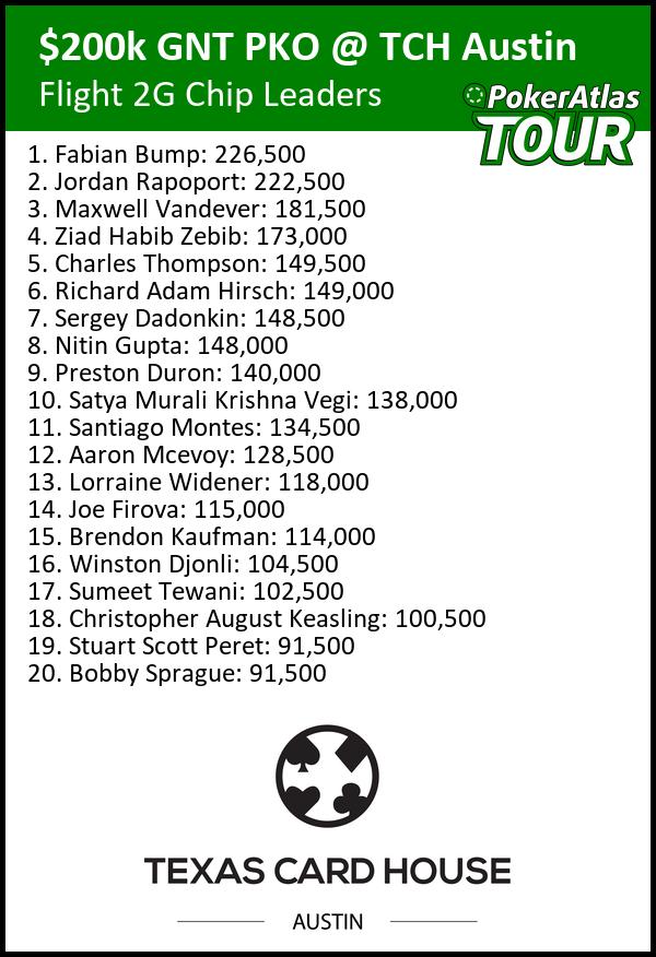 We had 161 entries in this flight, with 17 moving on to day two. A few minutes after the close of registration we have 48 remaining.